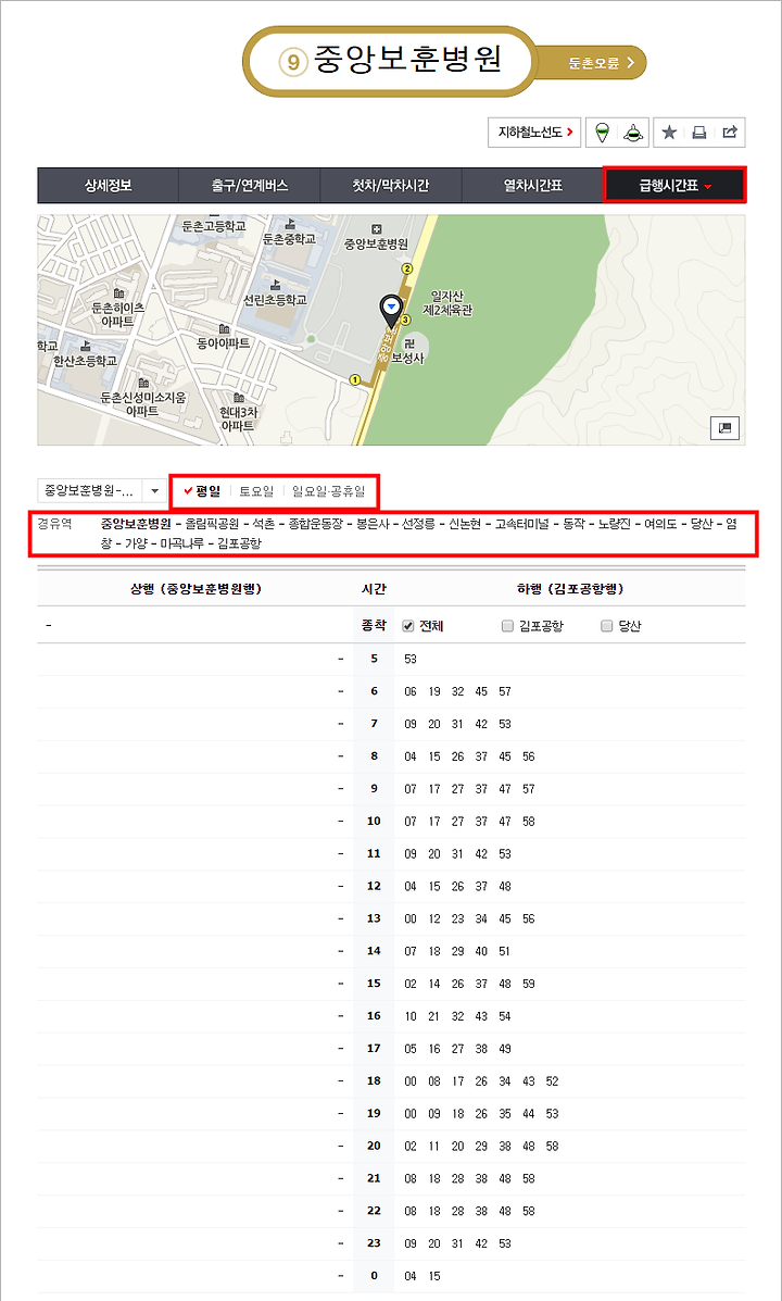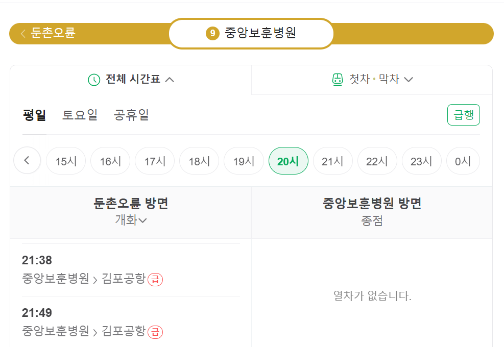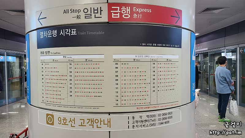 9호선 급행 시간표와 변동 사항