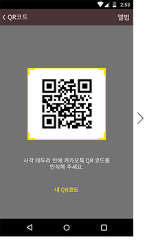 - QR코드를 화면 중앙에 위치하도록 카메라를 가져갑니다.